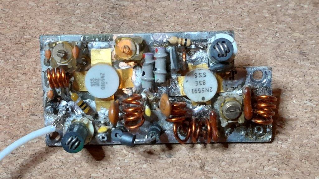 Puolijohteita ym. (nos) 12 kpl: 2SC793Y, TO3, NPN 80V, 60W, 7A, hFE >50 3 kpl: BLY90, VHF-päätetransistori, 12,5V, 50W 1 kpl: CME50-12, UHF-päätetransístori, 12,5V, 50W 33 kpl: ylijännitesuojain 230V, kaasutäytteinen juotoslangoilla |