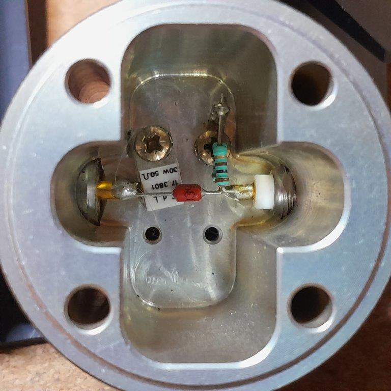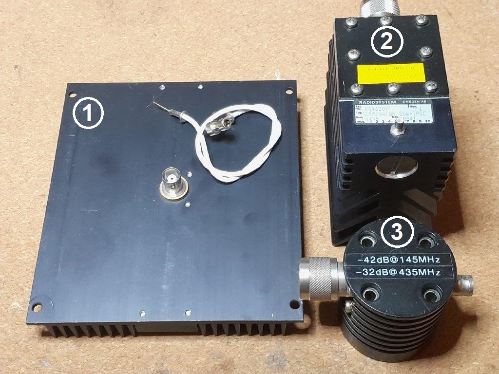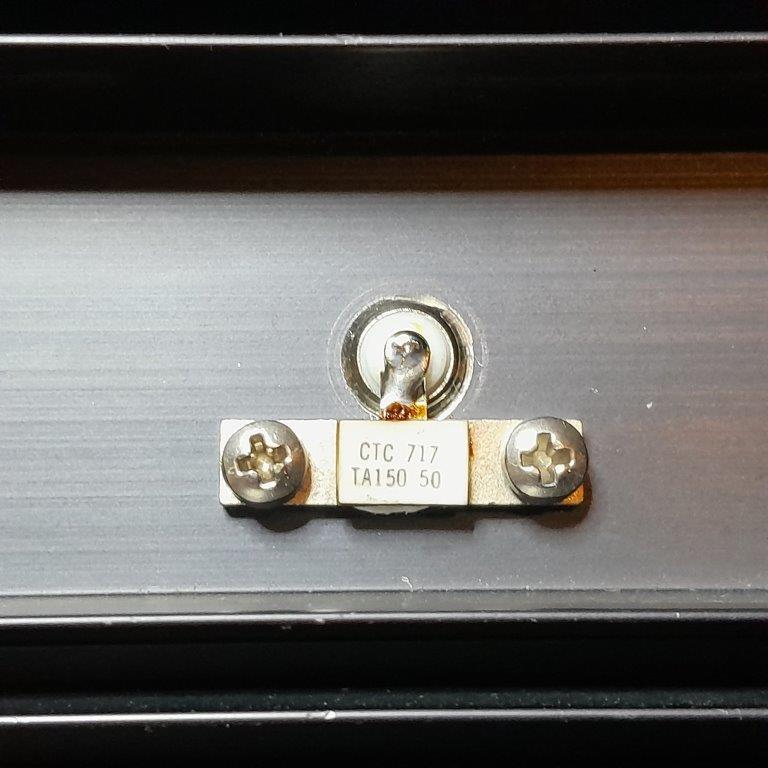 50 ohmin terminaattoreita 1. 150 x 130 x 20mm jäähdytysprofiiliin asennettu TA150-50 päätevastus, (tehonkesto lyhytaikaisesti 150W) BNC-female -liitin. 2. Radiosystem RS96207 koaksiaaliterminaattori, 50 ohmia 50 wattia. Varustettu DC-ulostulolla, josta saadaan tehoon verrannollinen tasajännite. Input-liitin: N-male, DC-output: SMB-male. 3. 30W terminaattori, N-male -liitin. Kapasitiivisesti kytketty ulostulo BNC-female -liittimellä. Mitatut vaimennukset: -42dB @ 145MHz -32dB @ 435MHz |