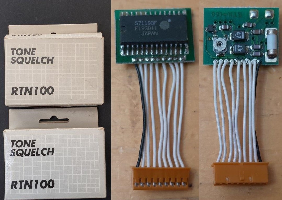 Tone Squelch RTN100 CTCSS-optio, perimätieto ei kerro minkä laitteen. Perustuu S7119BF-piiriin, joten sovitettavissa mahdollisesti muihinkin vastaavan rajapinnan omaaviin laitteisiin. Oheiset datalehdykät ehkä valaisevat asiaa. RTN100.pdf S7119BF.pdf |