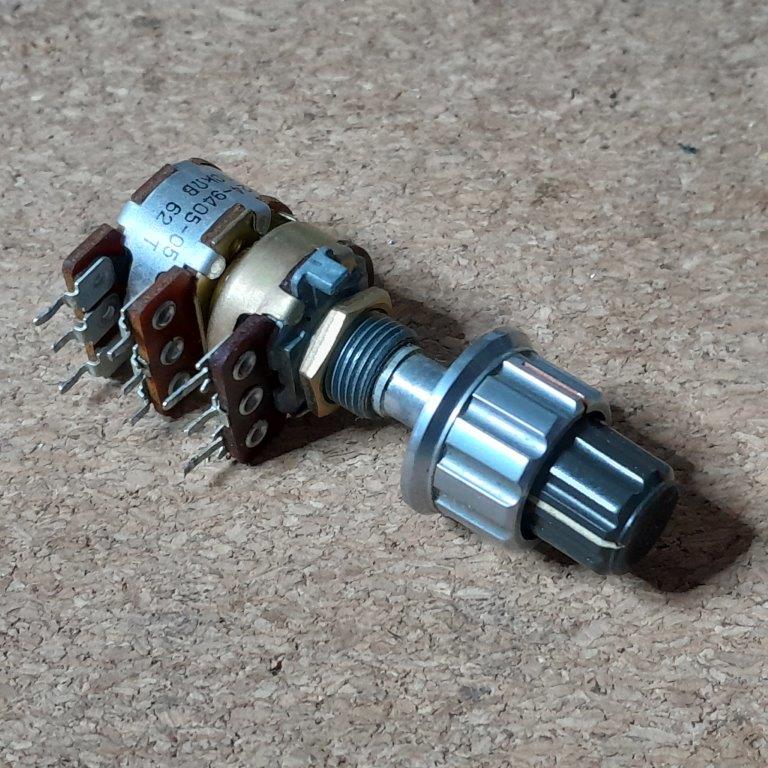 Kenwood TS-440S SQ / NOTCH-potentiometri Potentiometri R24-9405-05 (250k - 50k/10k), nupit K23-0710-04 (sisempi) ja K29-0741-24 (ulompi). Laitteesta irrotettu, toimii. |